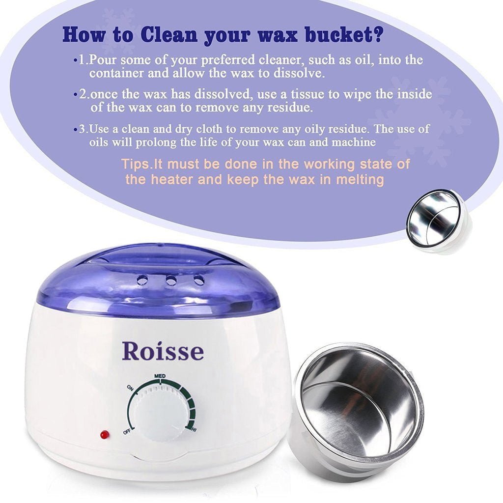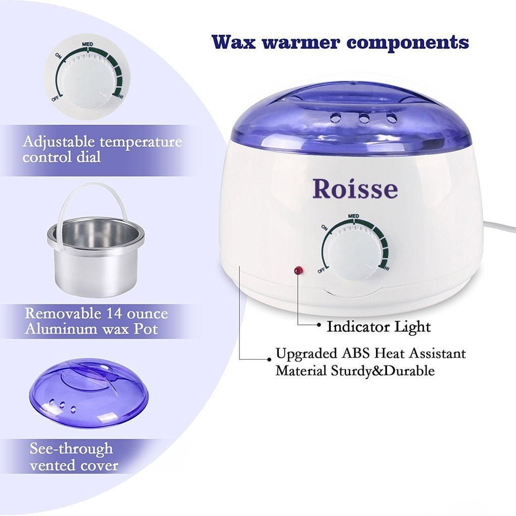 Roisse™ White Wax Warmer Hair Removal Kit with 5 pack Hard Wax Beans and 10 Wax Applicator Sticks